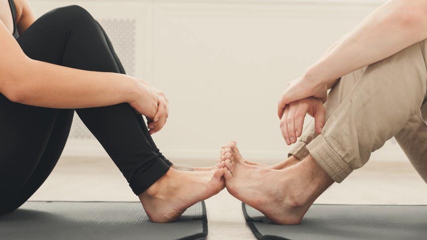 Valentine's Day is upon us! Celebrate the Day of Love by accomplishing what you secretly fantasize about: practicing yoga alongside your loved one. These simple steps can help you get that stressed, inflexible, and dubious friend next to you as you bend and breathe - no matter how tight he is or how much she thinks yoga isn’t for her.