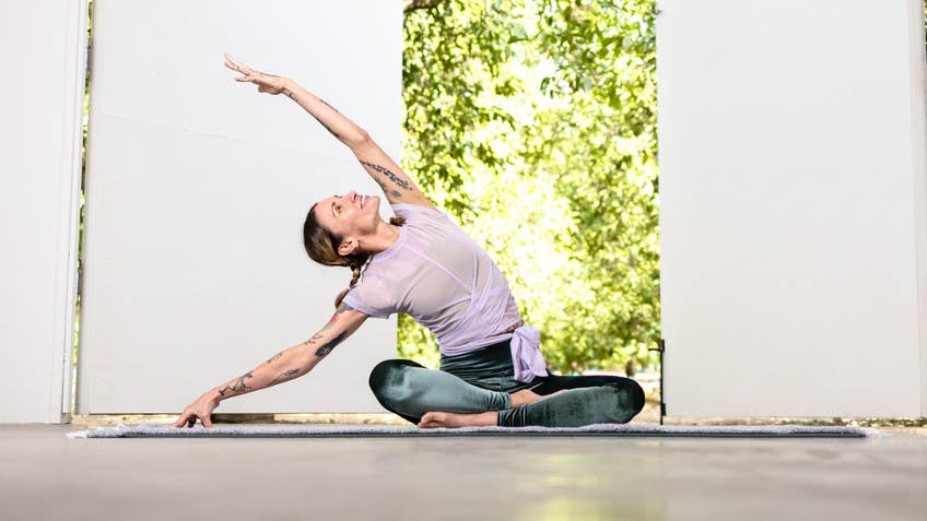 Just sit or lie on your back and do a couple of gentle stretches that feel really good. Tune into your luxurious, miraculous breath. Choose your favorite ones and really allow the movement to feel watery and luxurious and good. Take away any need for performance and tell the “shoulds” to sit to the side for few minutes. Let your breath wash through you like a gentle loving wave and really enjoy just a few minutes of tender movement.