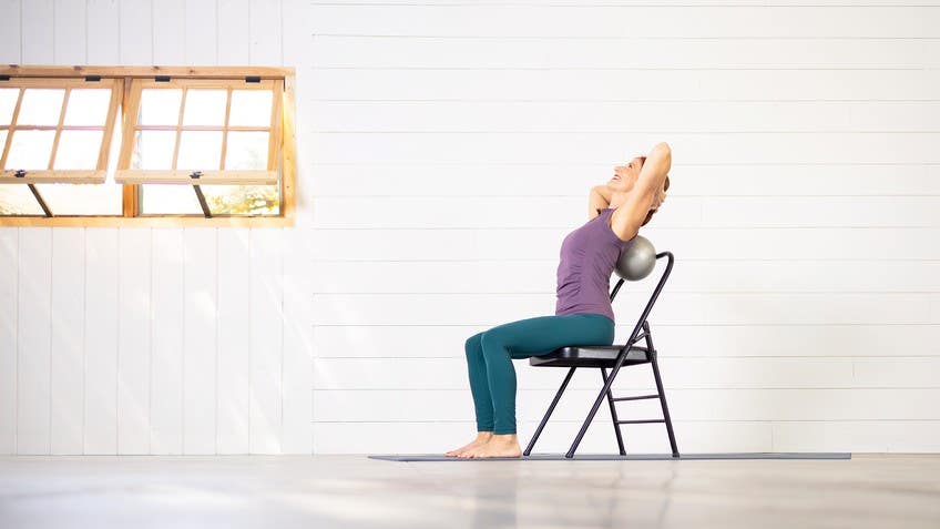 This final suggestion is a two-part move to release the area that has worked so hard to hold you together — that knot on the top of your shoulders.