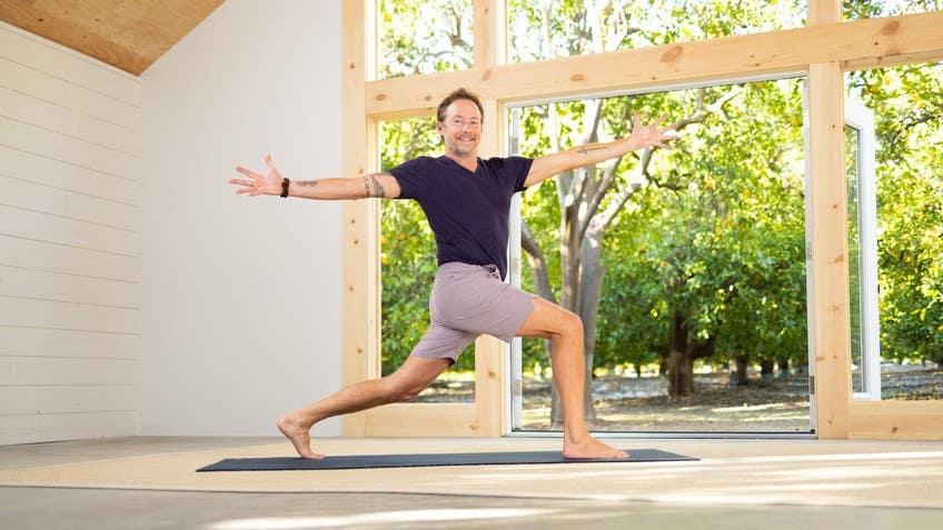 Hey there, welcome to Yoga Anytime. My name is Robert. This class I'm super excited to share with you. It's a whole combination of all the things I like to do on a daily basis. They involve core work, stability, flow, it builds your energy. So let's get started, alright? So I'm gonna turn this way. You do you, but I just want you to be able to kind of connect and see. We're gonna start with the hands back behind you, fingers pointed back, maybe start even with just like what does it feel like to open up the shoulders and the chest. Feet can go kind of wide, maybe as wide as the mat, and then we'll start by, I'll bring my knees to you first, the hips rotate like a windshield wiper to the right. So okay, feel that in your hips, maybe your back, and we roam to the other side. Now keep in mind as we do this a few times, you're gonna travel around on your mat a little bit, so just make the adjustment every time, bring yourself back to center. This is just the beginning. So as we're just beginning, I encourage you to like locate your breath. Locate and become mindful of your breath as it draws in through the nose and out through the nose as often as possible, but sometimes it feels good to let that breath fall out of the mouth. Okay, good. So now let's go over to the right. Lift and lean your body over the inner right thigh. So this might feel a little like pigeon to you. Okay, outer hip, the other side, up to center, over to the other side, get that stretch, that opening, and then lift the torso and lean. And so you're leaning the body over the inner left thigh, and then as always, I'll always encourage you to wander, to explore, and feel. Let's go one more time over to the right, because what it is really, this whole practice, right, it's like a communication, a dialogue over to the left, involves listening, a little respect, and then the dialogue is between you and your body. Okay, let's try it without the hands, also start to employ a little more core. So start where we started, maybe the arms out in front of you, hips over to the, or knees over to the right, boom, hello, press back up using your leg strength and core strength, and then we float to the other side, pigeon, nice, back on up, back to center, you can do that as long as you'd like. Now we'll go with that pigeon theme just a little bit more, bring your feet back to hip width, with your fingertips pointed back, or with the fingertips pointed forward, it's really up, it's up to you. Let's press the hips up into a reverse tabletop, so ground through the heels, big toe mound, press the hips up, and as you're pressing the hips up, you may have to kind of like figure out how to really open up the shoulders, and let the head open up a little bit, or the throat, and then lower back down, breathe in, breathe out, push back up, so it's a little combo of a stretch in the shoulders, and maybe some leg strength, press up, open up, and bring it down. Now maintain this position, bring the arms out in front of you, lean back, now bring the right hand back behind you, left arm stays forward, but then twist to the right, use your belly muscles to deepen that, then bring it back to center, inhale, exhale to the left, good, inhale center, maybe just do a little tap as you reach back, you're inhaling center, exhaling twist, inhaling center, exhaling twist, inhale, exhale, exhale, exhale, one more to the left, super good, now bring the hands back to back behind you, fingertips pointing back, bring the feet in a little closer, take the left ankle over the right knee, flex the left ankle, drop the seat back down, push the chest toward the shin and ankle, going for that pigeon stretch, really keep that left foot like flexed to protect the knee, and then just take a little like movement, right, just a little movement side to side, kind of like the windshield wiper you did, it's just maybe a little different, okay, we're gonna exit by lifting the hips, we just did that, but with this figure four position, bring the left foot back down, take the right foot over the left knee, drop back down safely, flex that right foot, protect your knee, and again walk the chest toward the shin toward the ankle, rotate to the right, rotate a little bit to the left, okay, back to center, let's exit the same way we did on the other side, so lift the hips, right foot back down, seat stays down now, now take the hands and roll the roll the wrists just a little bit, the thumbs, right, take the hands alongside like out from your hips, you'll have to personalize this, lean back, lift the feet, now shoot the legs forward, you can cross an ankle, just keep the legs really engaged, just a little tummy work here, exhale, knees draw in, so inhale out, exhale, tuck in, two of ten, I'm gonna lean back just a little bit more, inhale, exhale, exhale, good, exhale, exhale, I'm gonna call that six, seven, eight, good, nine, and ten, okay, back to this position here, feet down, hands back behind you, the next part of this is a little crab reach, take the left arm out in front of you, ground the right hand, pack that right shoulder in, lift the hips high, reach the left arm up and back behind you, you can even look down if you'd like, I can give you a little thumbs up, right here, good, press the hips, so this is like nice to open up the hips after what we just did, good, lower down, oh stay steady in the core, switch it up, right hand forward, left hand back, pack that left shoulder in, press the hips up, maybe exaggerate that right hip as you reach the right arm back, gaze down possibly, gaze up with control, bring it back down, oh nice, okay those little tucks again, lean back, use your hands, bring the knees in, inhale extend out, exhale, exhale, exhale, beautiful, four, five, keep your legs really super strong and engaged, maybe point the toes or flex the feet, I lost count, let's call it one, I'm just kidding, eight, nine, ten, good, you're definitely gonna be feeling that in your quad