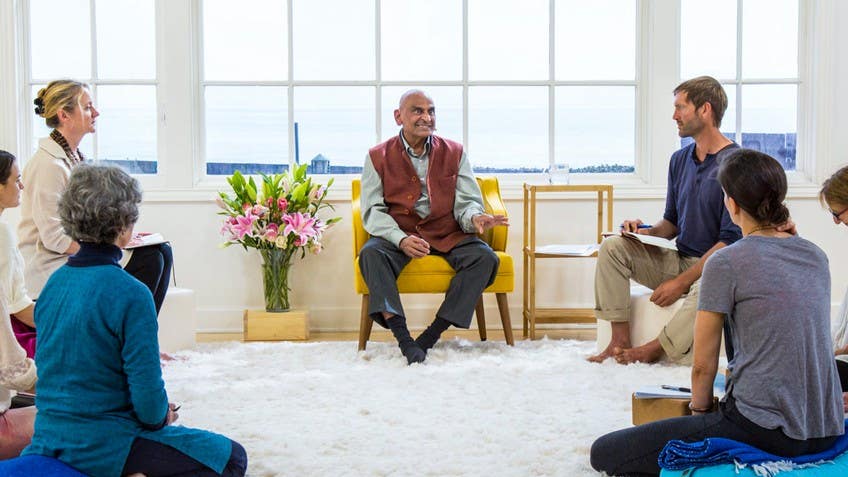 Well, continuing the practice of meditation a little bit from yesterday, to remind ourselves of the vastness of the universe and the cosmic intelligence that is permeating the whole space, our part is to become more and more receptive to these subtle energies. So, deeper and deeper relaxation and finding the whole alignment, intellectual, physical, which allows receptivity, and paying some attention to our breath, which is again a reminder that the spiritual aspects of the universe enters into us as our breath. Now I find what in me wishes to be connected with these subtle energies, whatever label appeals to us, Holy Spirit, Brahma, sometimes they get more personalized as Christ or Krishna, and then also to watch how the ordinary mind has a natural tendency to freely associate with something or the other, even with one word or one memory. So I actually practice what is specifically called abhyas, which is literally meaning practice, but essentially a reminder to stay in front of whatever I have chosen to stay in front of. And I intentionally bring my attention to connect with simply breathing in and breathing out without artificially changing my breathing.